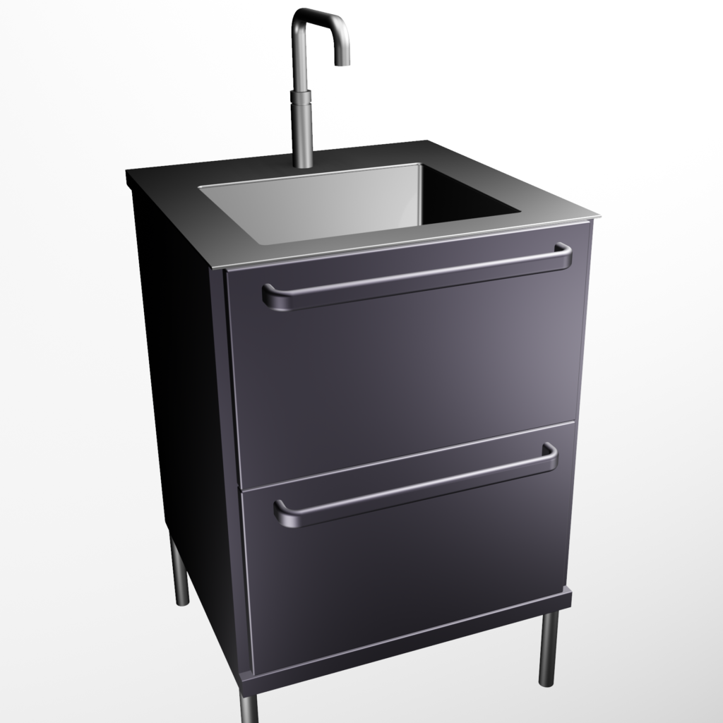 Module met spoelbak en Quooker kraan en warm-/kokend watervoorziening. Breedte 60 cm.